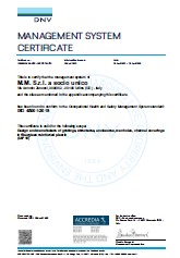 DNV - Système de Management de la Santé et de la Sécurité au Travail ISO 45001:2018 Design and manufacture of structures, gratings, enclosures, manholes, channel coverings in fiberglass reinforced plastic (IAF 14) Certificat : 10000510958-MSC-ACCREDIA-ITA Date de la première émission : 26/04/2022 |